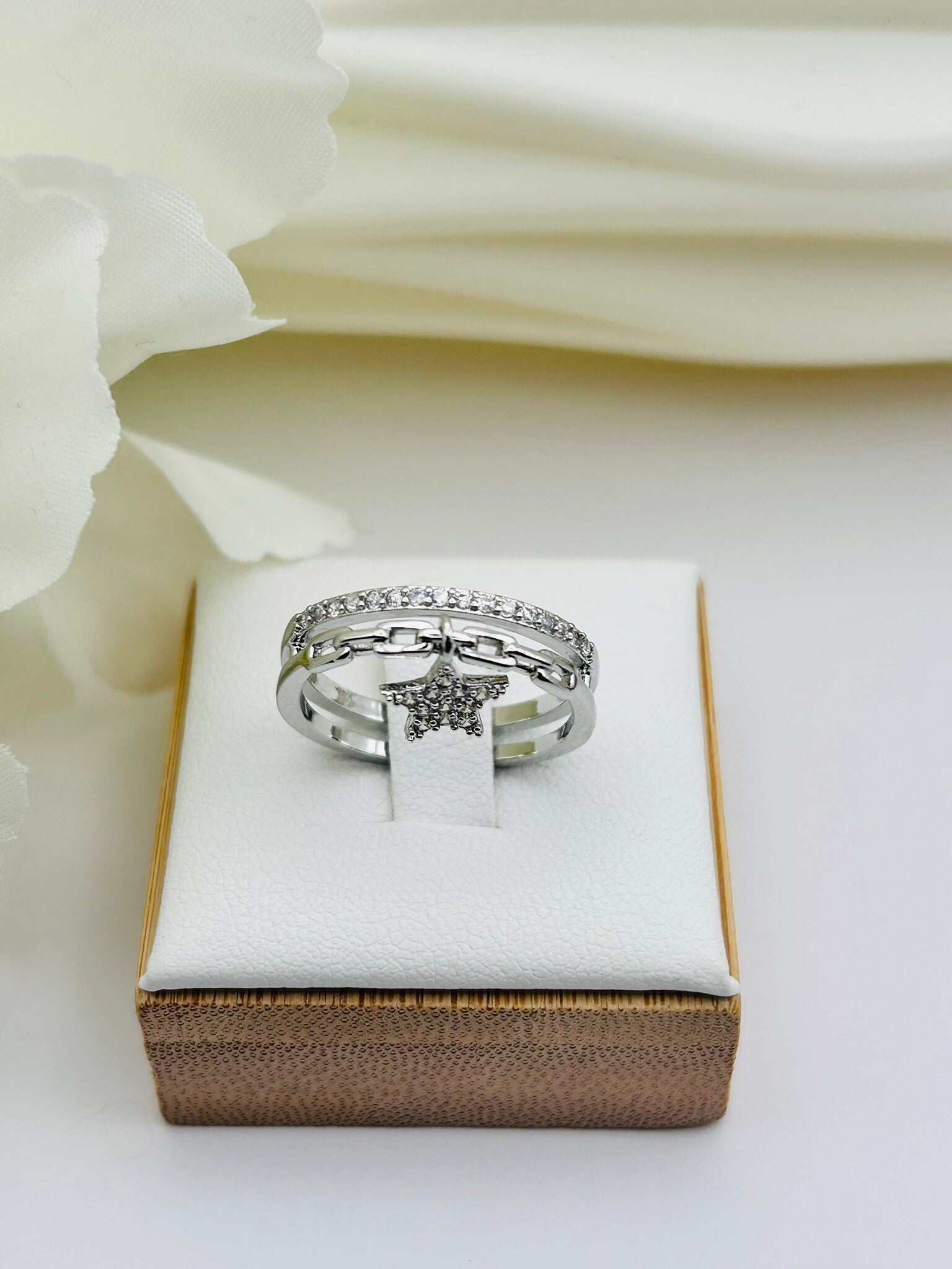 Craquez pour cette bague ajustable étoile, symbole de rêve et d’élégance. Son design délicat s’adapte facilement à toutes les tailles de doigt grâce à son système réglable. Présentée dans une boîte cadeau, elle est idéale pour offrir à l’occasion d’un anniversaire, d’une fête ou simplement pour faire plaisir.