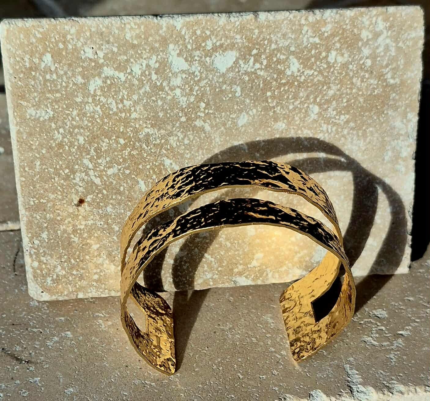 Manchette en Acier Inoxydable Doré – Effet Martelé