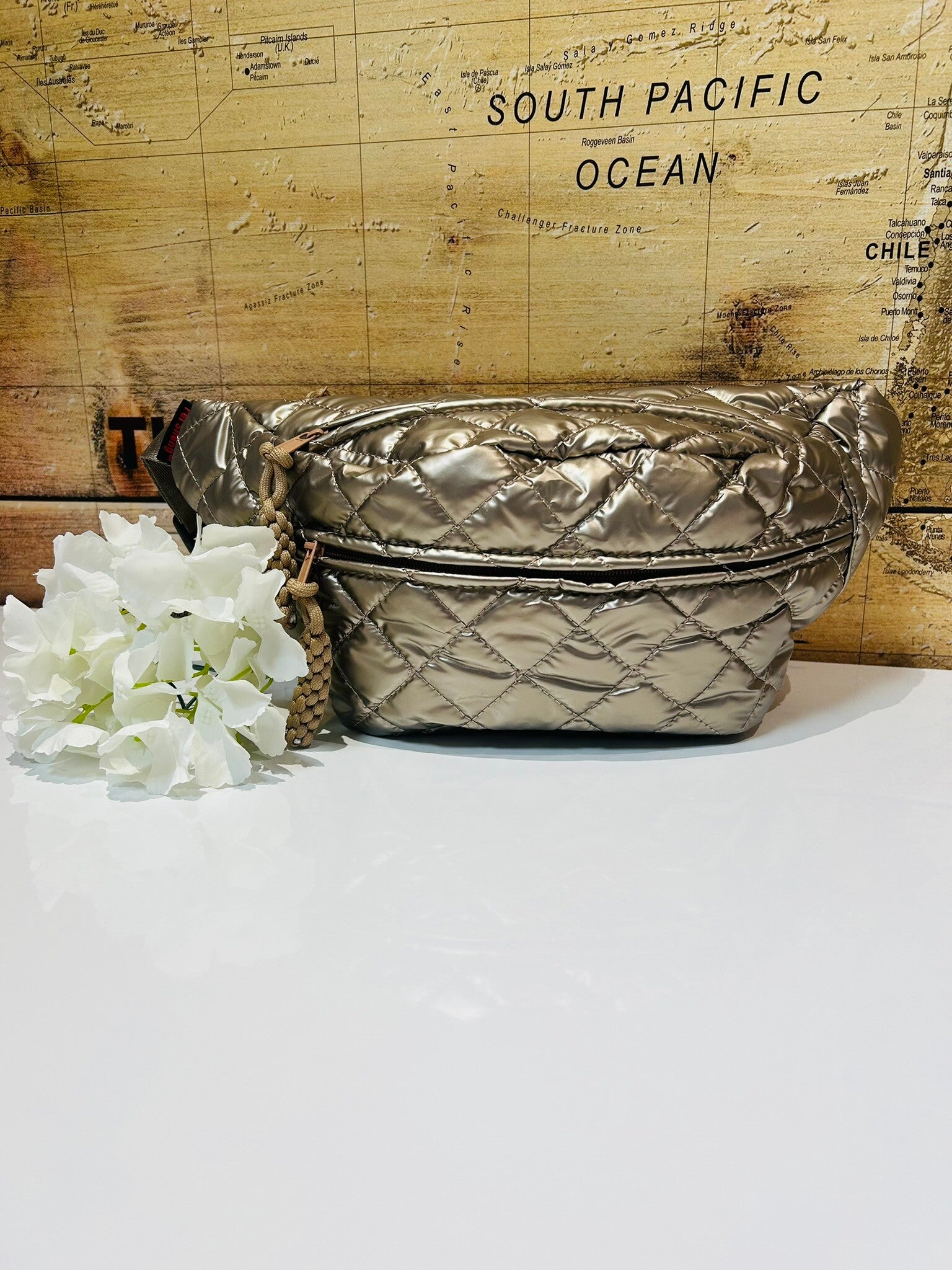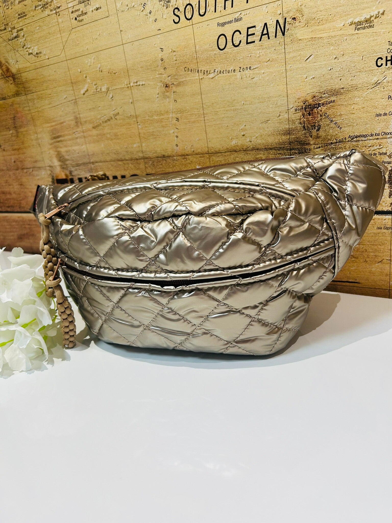 Sac Banane Champagne Doré Matelassé – 3 Poches