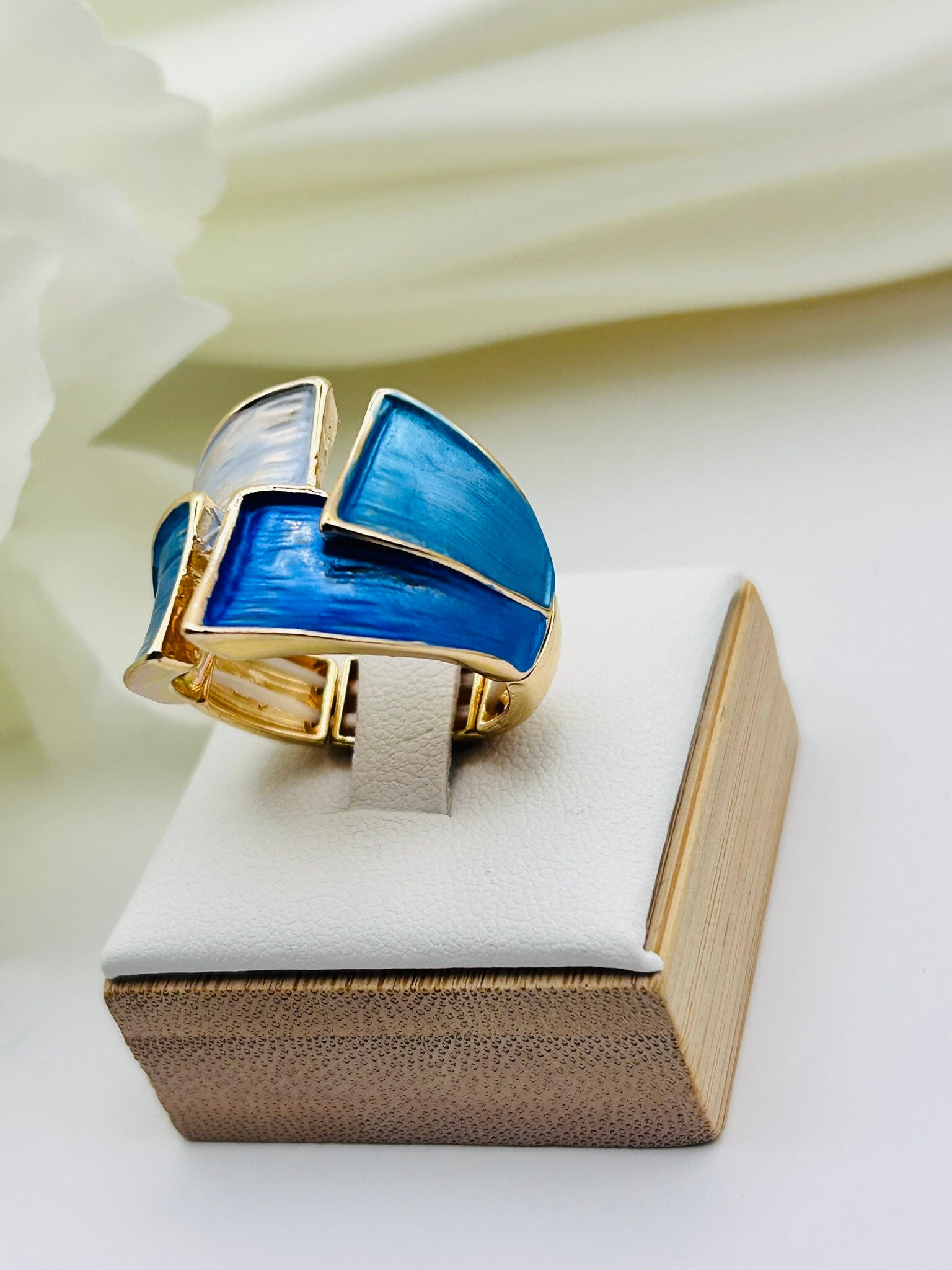 Bague ajustable géométrique dorée aux nuances bleu