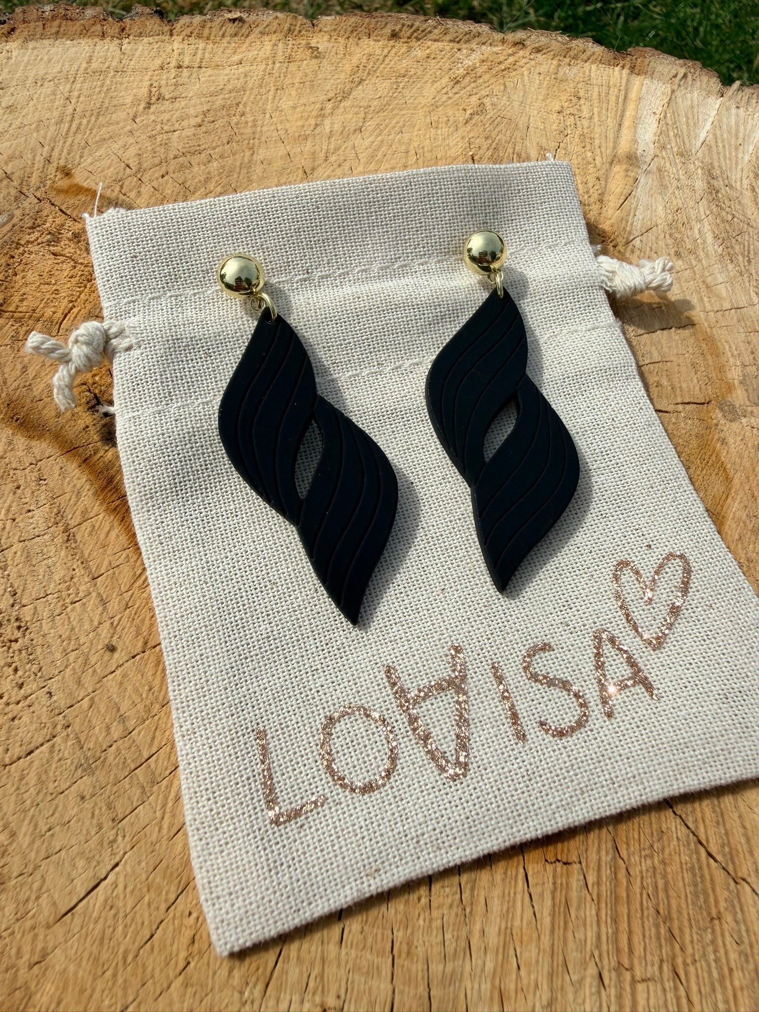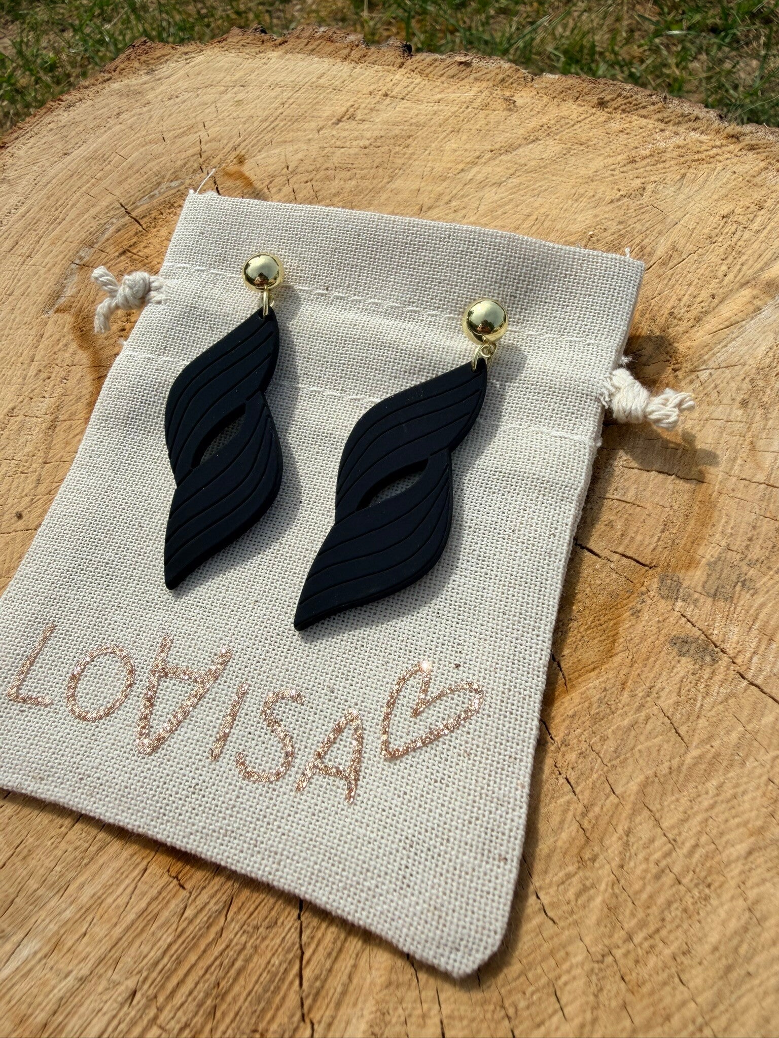 ✨ Boucles d’oreilles pendantes noir sculpté ✨