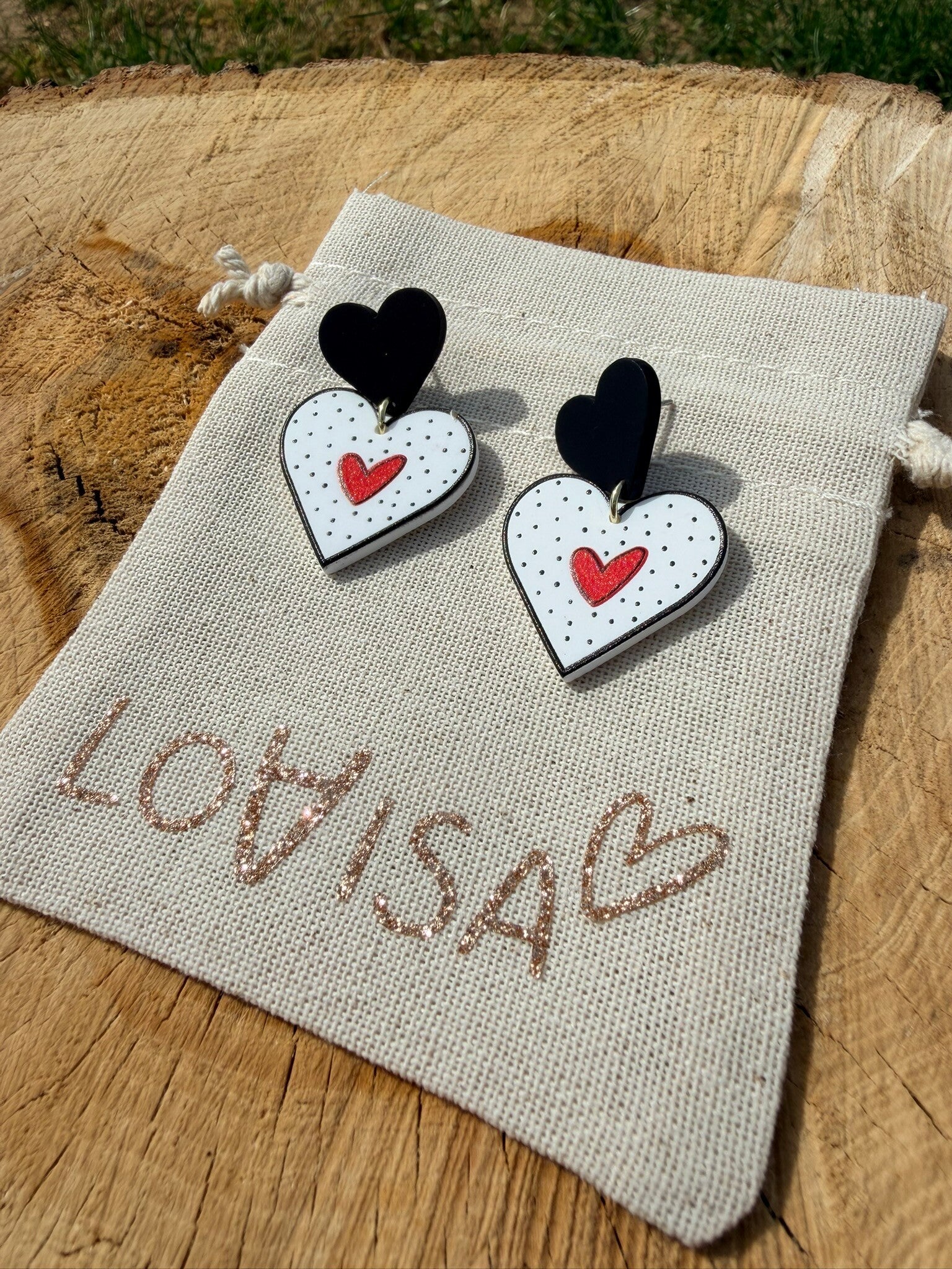 ❤️ Boucles d’oreilles cœur pois noirs & cœurs rouges ❤️