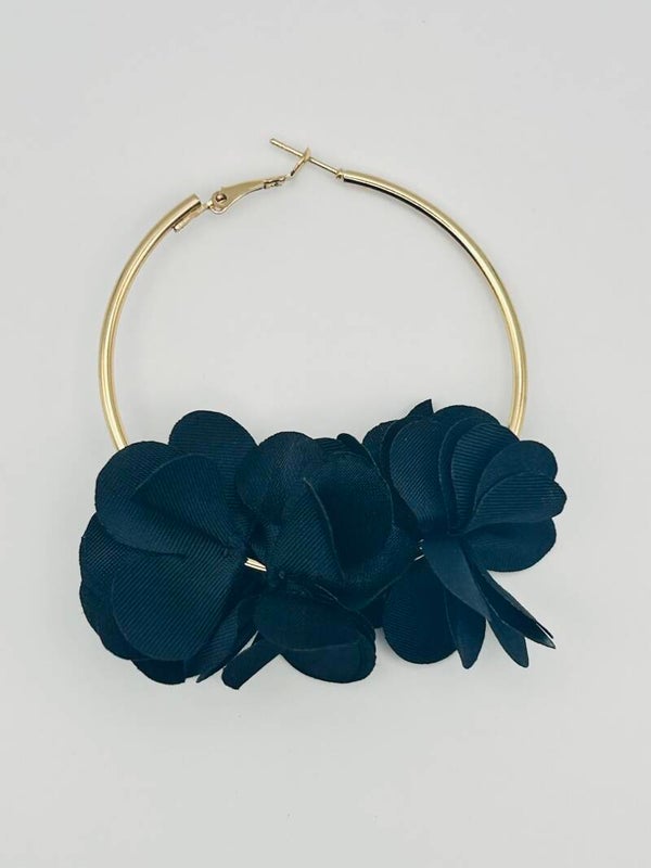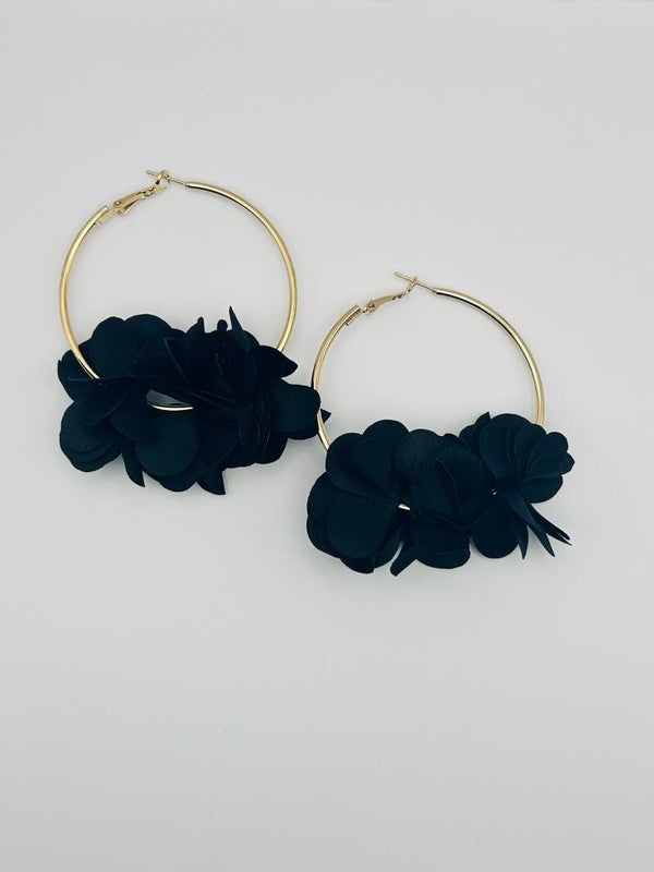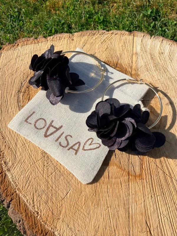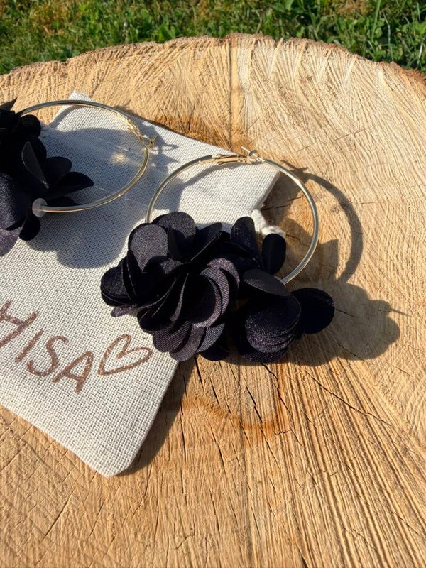 Boucles d’oreilles créoles dorées avec pompon noir